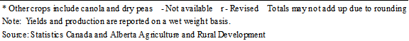 Estimates of greenfeed and silage production in Alberta for previous years, dating back to 2003, are also shown in Table 1.