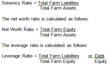 The solvency of a business at any point in time is shown on their net worth statement. Solvency is measured from the information shown on the net worth statement. As was stated above, a farm having enough assets to cover its liabilities is solvent. The degree of solvency must be measured, as some farm businesses are more solvent than others. The degree of solvency necessary for a farm business to be successful is of paramount importance to know when assessing an agricultural operation.